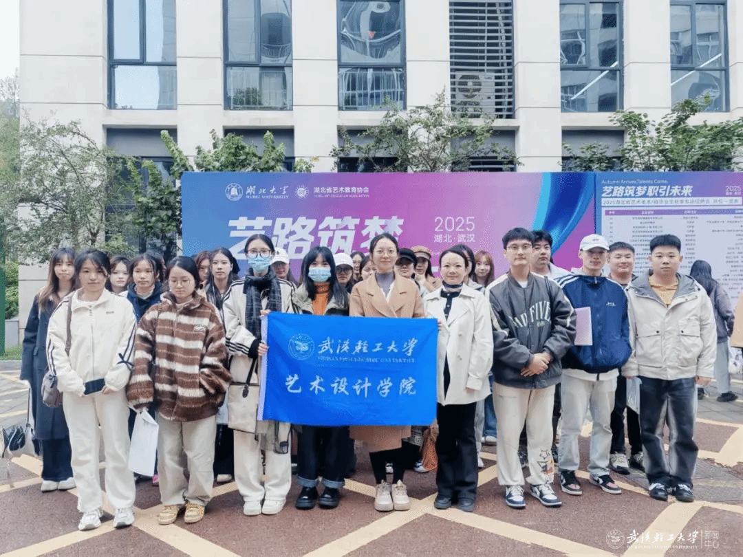10月21日下午,设计学院组织2026届毕业生赴湖北大学,参加“一路筑梦 职引未来”湖北省艺术类本硕毕业生就业秋季专场招聘会。学院党委副书记余艺、毕业级辅导员张胜男带队参会。